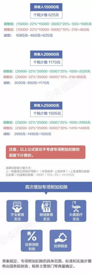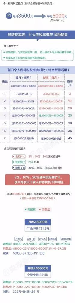 “起征點(diǎn)”上調(diào),稅率結(jié)構(gòu)優(yōu)化調(diào)整,一系列改革動(dòng)作后,你每月會(huì)少繳納多少錢?一張圖看懂↓