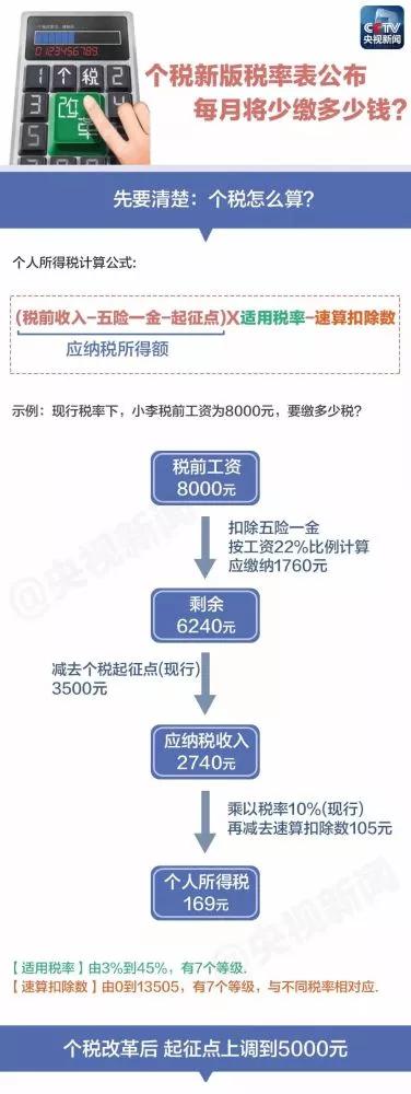 個(gè)稅新版“稅率表”公布 你每月將少繳多少錢