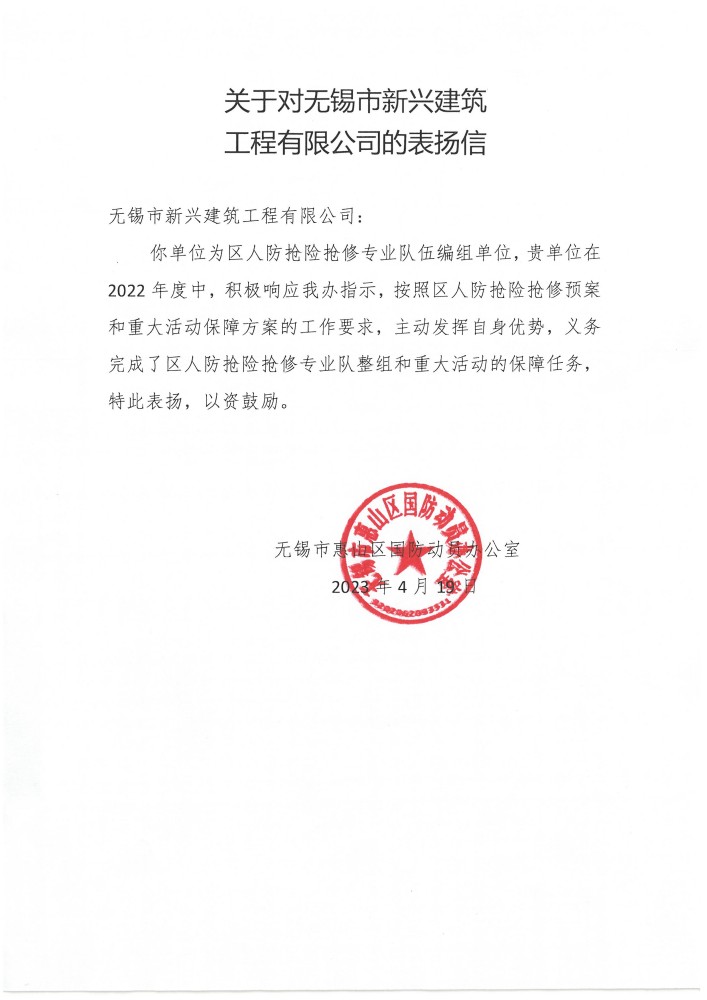 2023.04 人防搶險搶修2022年度表揚(yáng)信