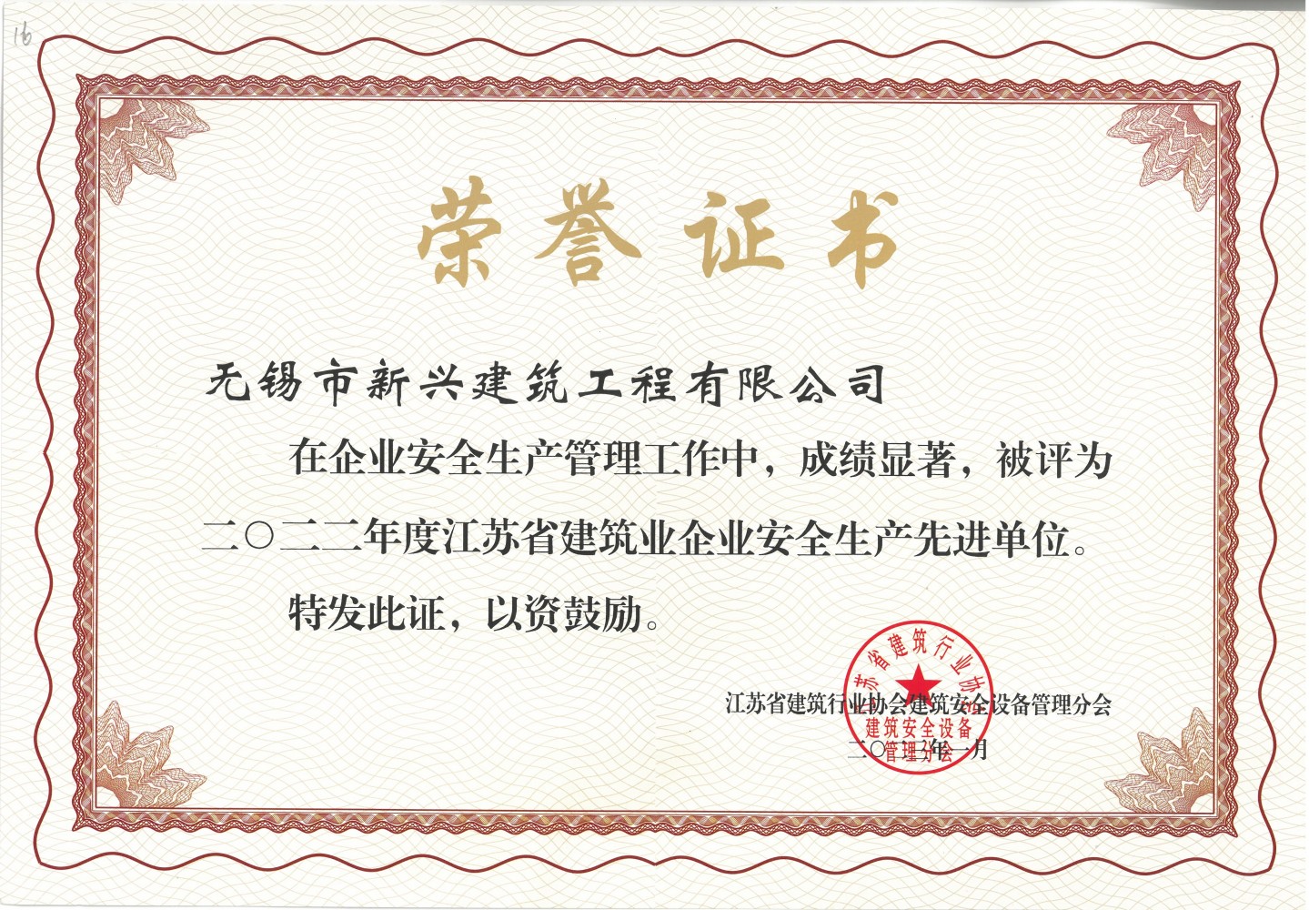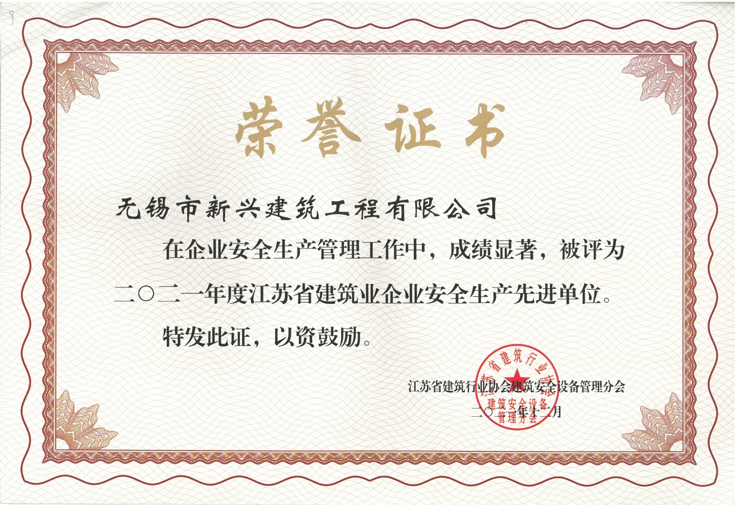 2021.12 2021年度江蘇省建筑業(yè)企業(yè)安全生產(chǎn)先進單位