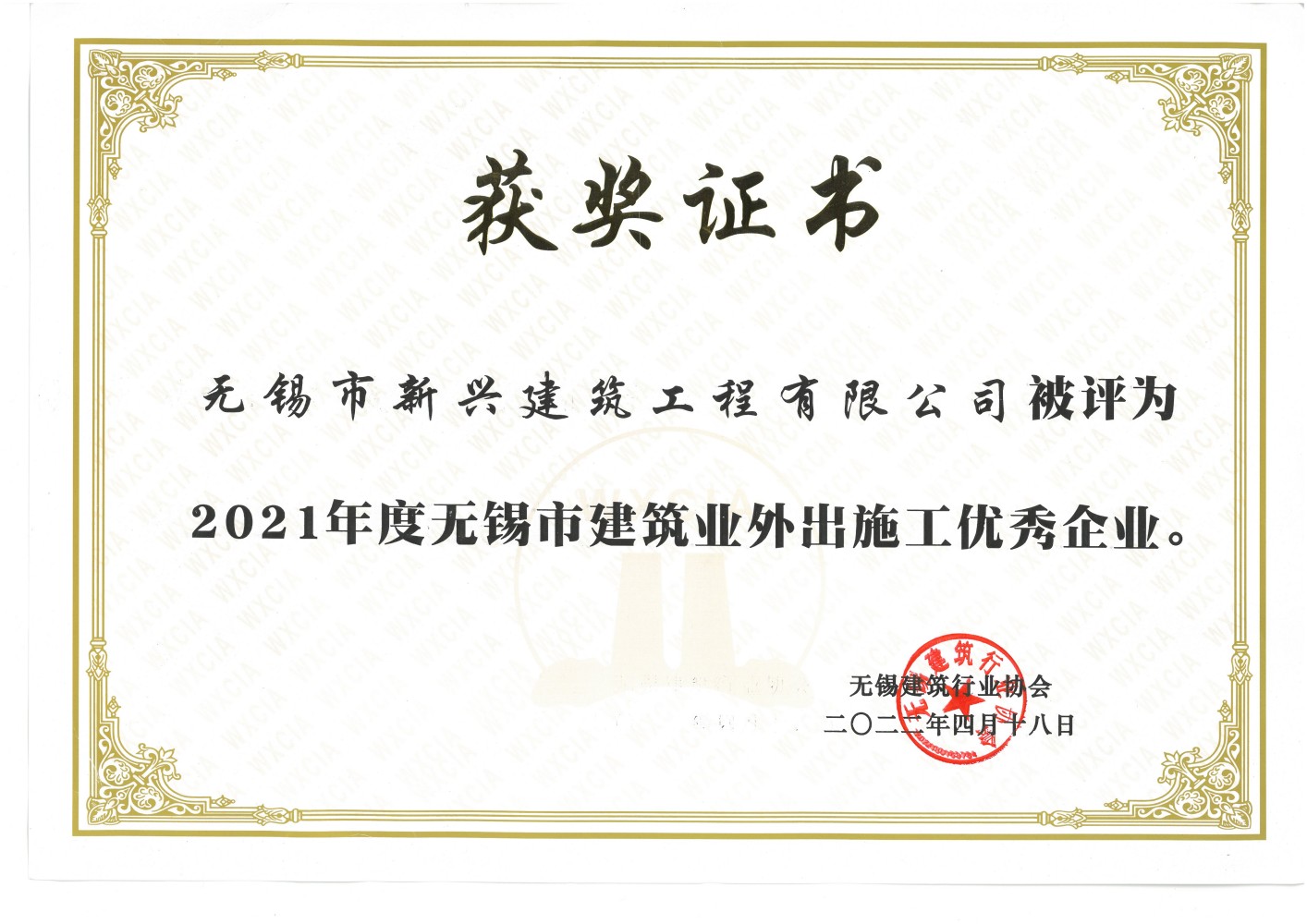 2022.04 2021年度無錫市建筑業(yè)外出施工優(yōu)秀企業(yè)