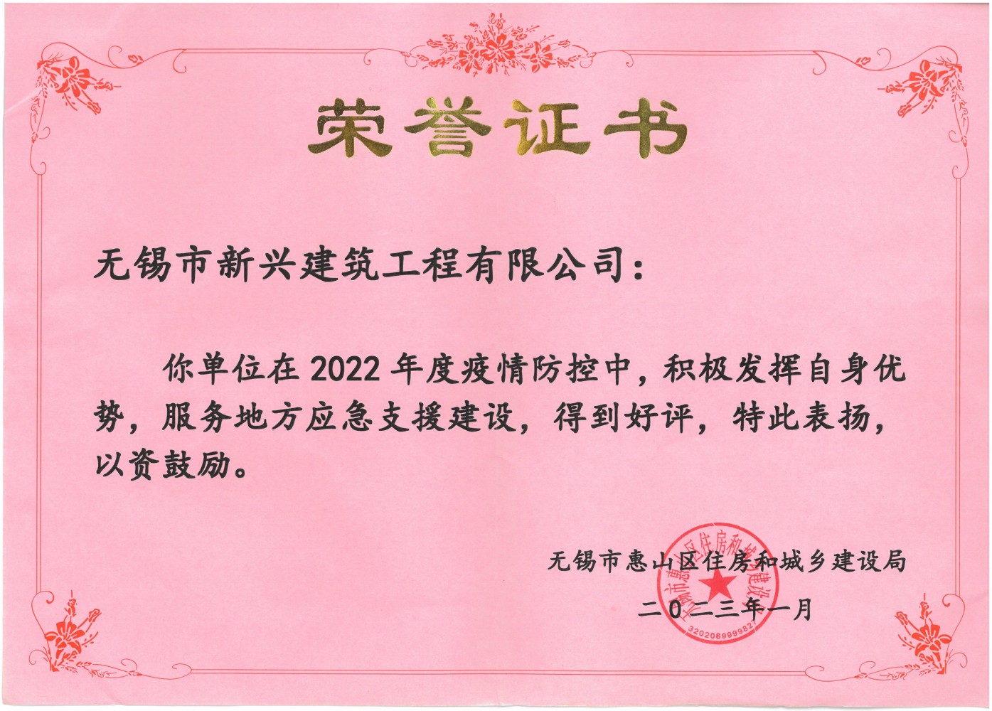 2023.01 惠山區(qū)住房城鄉(xiāng)建設局疫情防控表彰