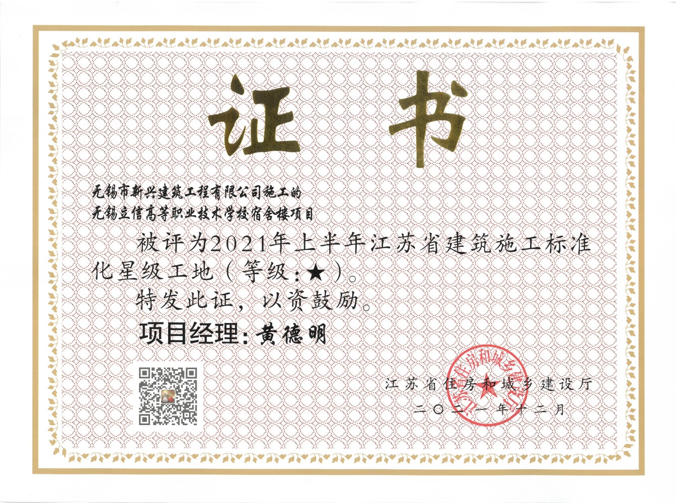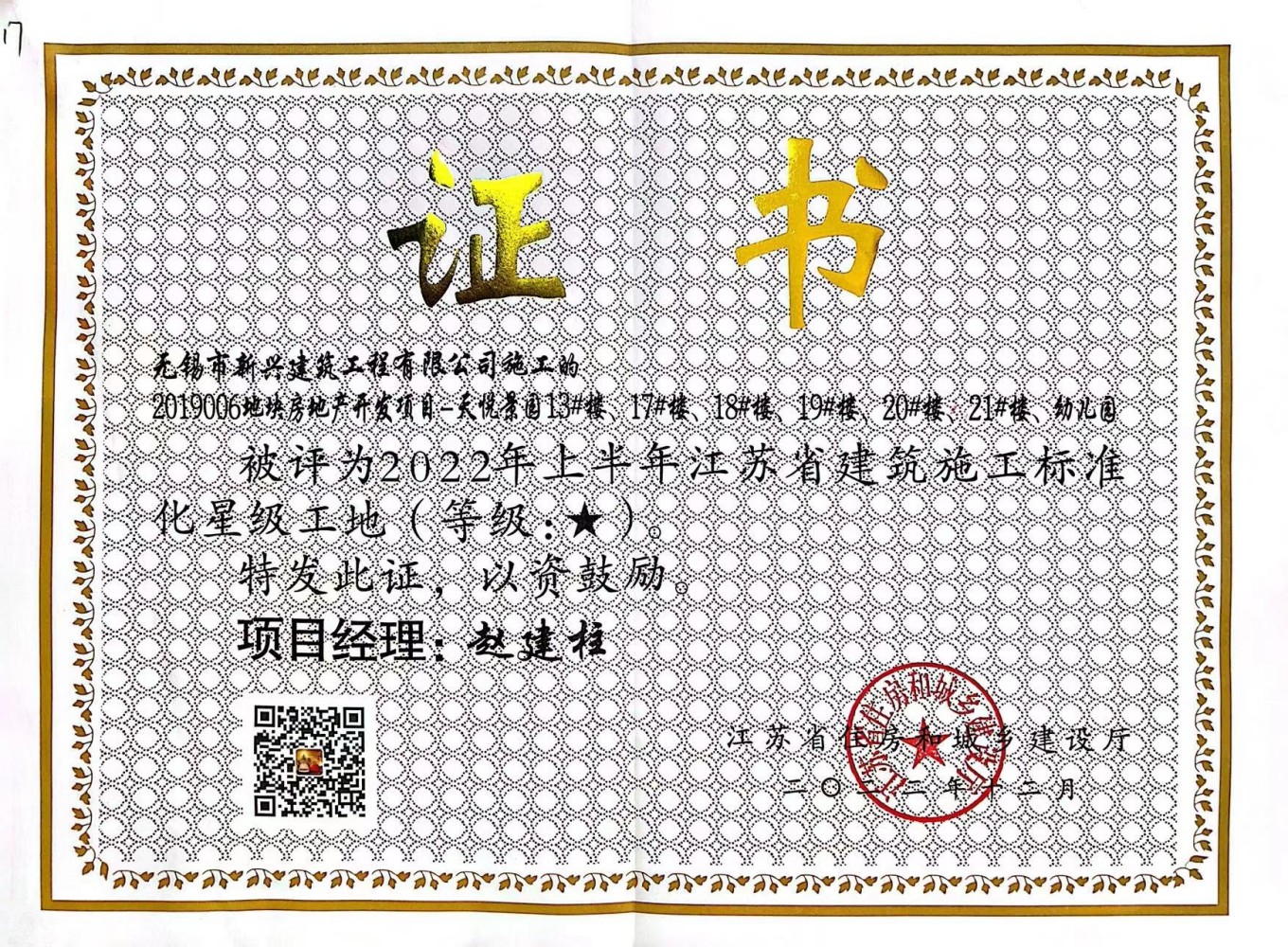 2021.12 大莊里酒店2021年上半年江蘇省建筑施工標(biāo)準(zhǔn)化星級(jí)工地