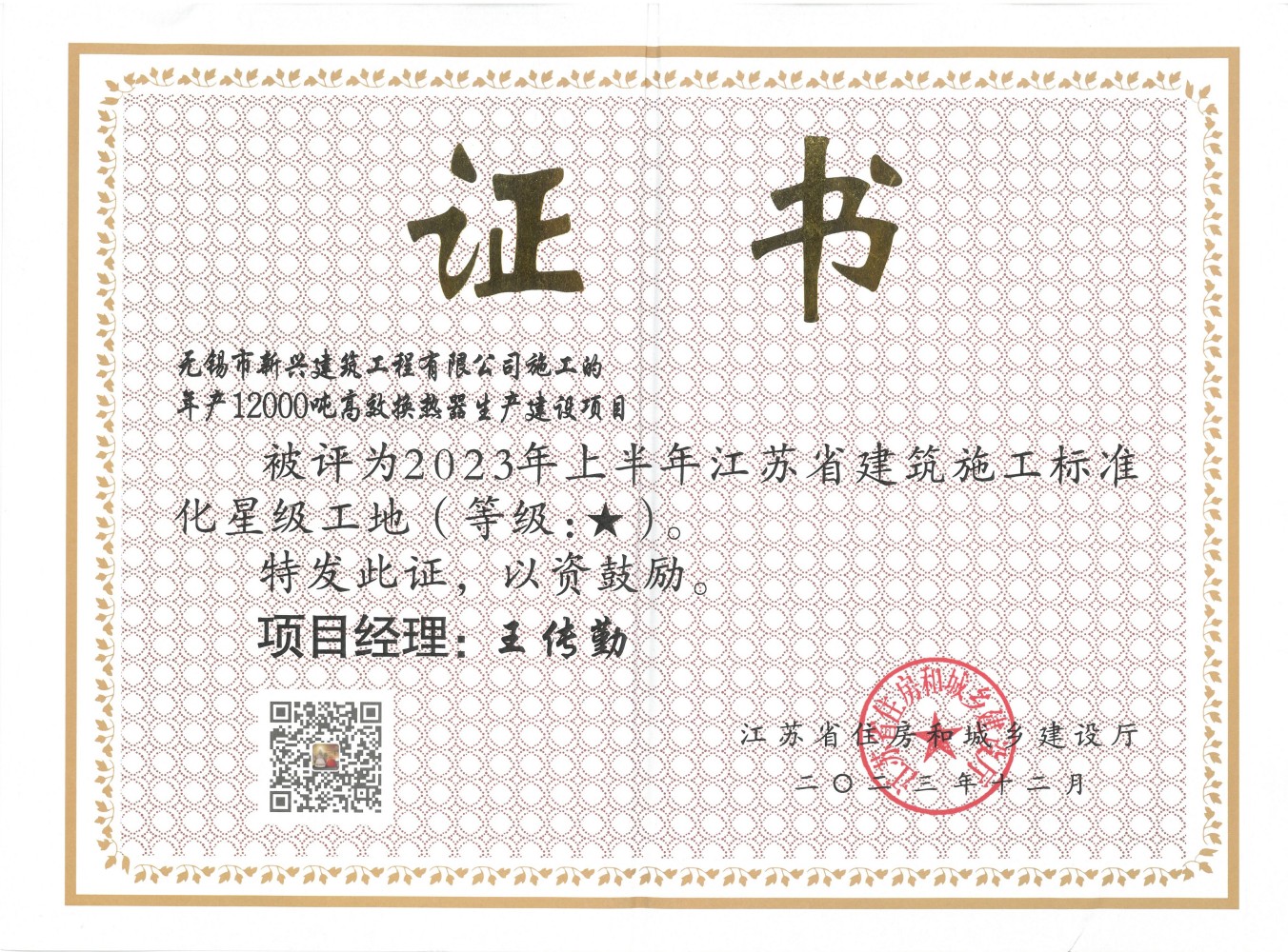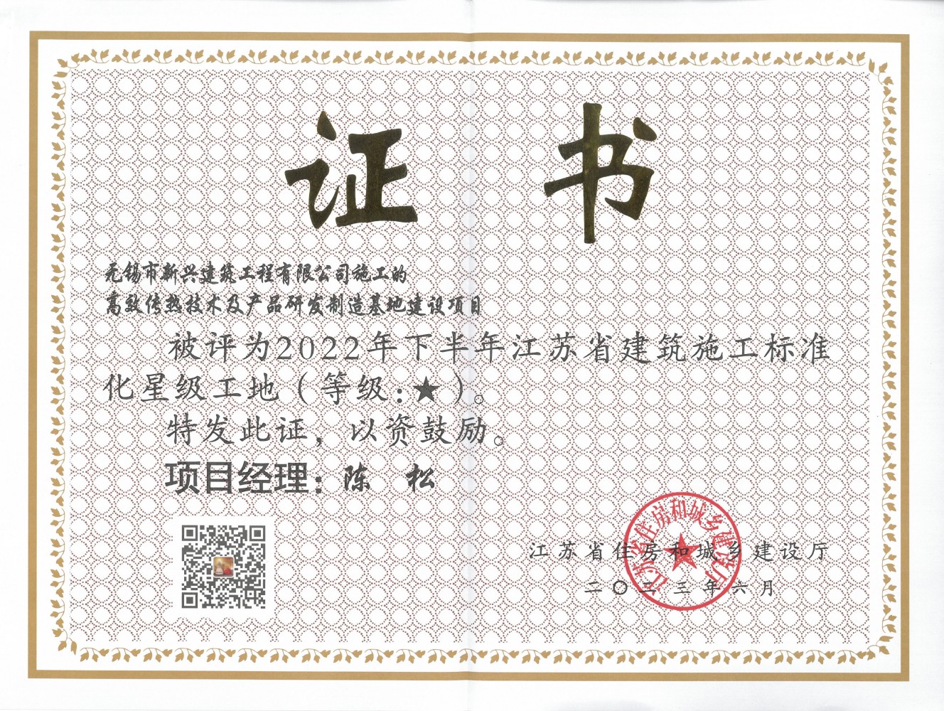 2023.06 高效傳熱技術(shù)2022年下半年度省標(biāo)化星級(jí)工地