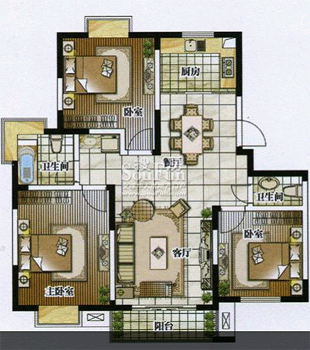 盛世翡翠8、9、10、11號樓Y-3戶型3室2廳2衛(wèi) 約126.00㎡