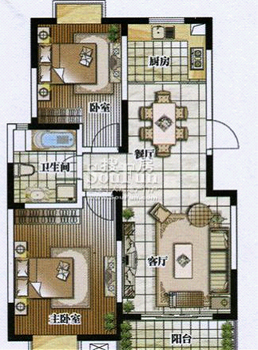 盛世翡翠2期3號樓戶型G13室2廳2衛(wèi)約130.00㎡