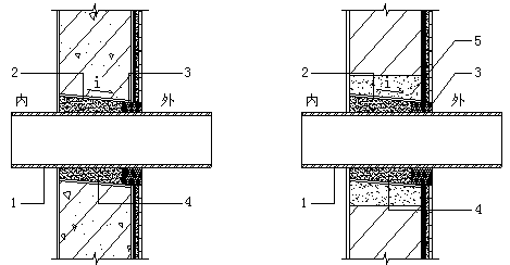 1-伸出外墻管道;2-套管;3-硅酮耐候膠; 1-伸出外墻管道;2-套管;3-硅酮耐候膠